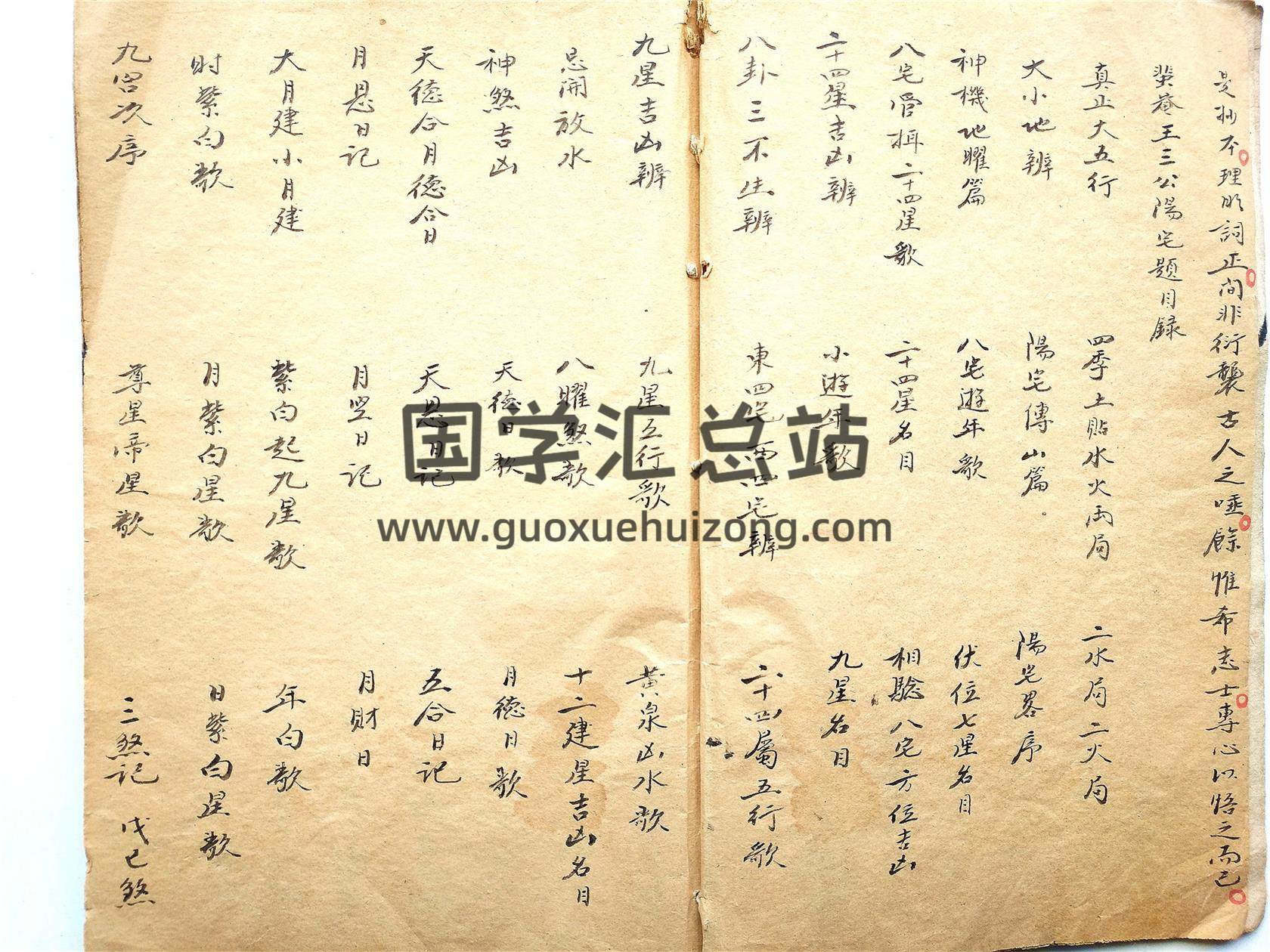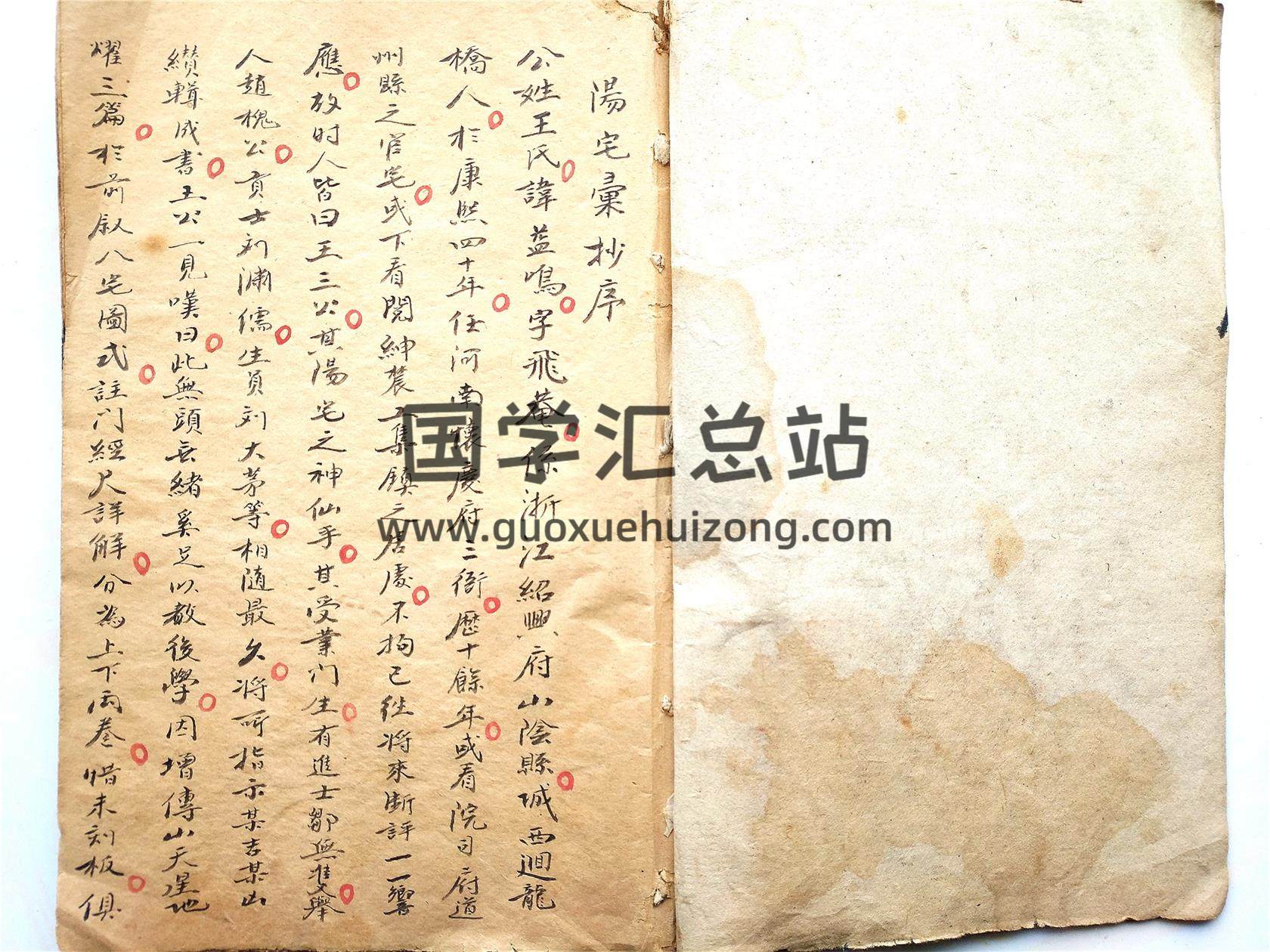 清抄民间风水古籍《阳宅考验》全名《飞庵王三公阳宅考验》,清抄本,75筒子页。内容丰富珍贵,含一百多小节,详见目录图,通篇朱笔圈阅,钤印多多,足见时人对此本之珍视。王氏益鸣字飞庵,浙江绍兴府山阴县城西回龙桥人。于康熙四十年任河南怀庆府三衙,历十余年,遍阅司府道州县之官宅,或乡绅农工集镇之居处,人送雅号“王三公”或曰“神仙手”此本古之后学仅以抄本传承,惜未刻板流存,内容丰富珍贵。