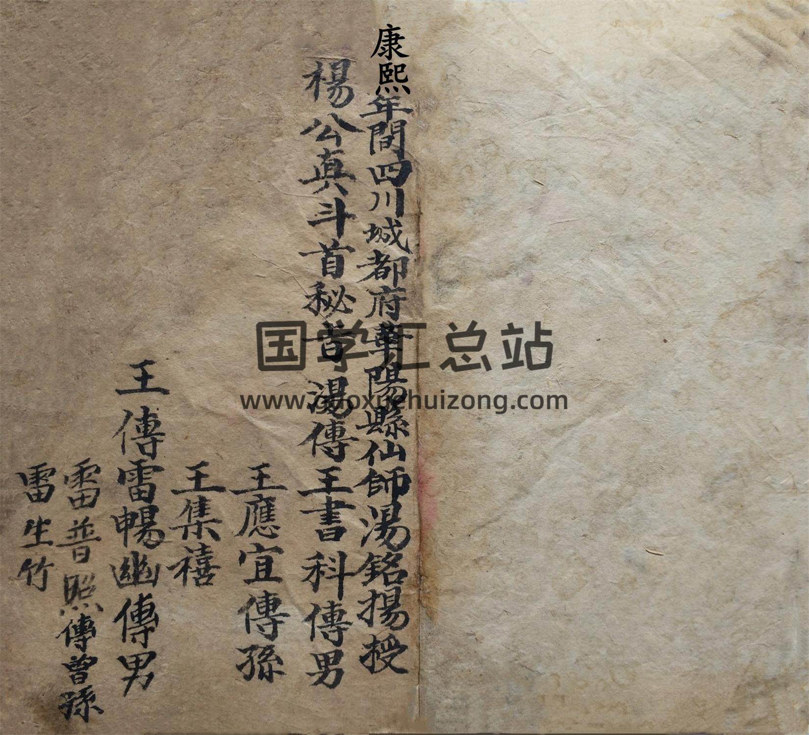 此书为家族世代相传,开篇有言:康熙年间四川城都府华阳县仙师汤铭扬授杨公真斗首秘旨,汤传王书科,传男王应宜传孙王集禧,王传雷畅幽,传男雷普照传曾孙雷生竹。