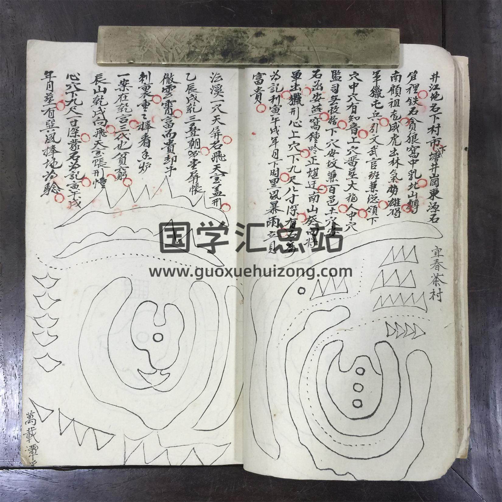 《地理龙脉》,清光绪丙申年,张六合手抄本,此书主要记录多个自留地、风水留题地,并附图形110幅,加以详细阐明,如万载进城、万载龙河渡、分宜新祉、宜春茶村、万载屠源塘、万载烟竹、万载里鹤洪江白泥里、万载小江西、萍乡冷水前车、萍乡金鸡庙下、分宜珠塘、分宜东岳庙前、萍乡九州山、分宜马案岭、萍乡芦铺、萍乡天门骨脉、渥江倒地莲花形、金鸡山凤形、绿波龙神潭真武形、堵田山口龙形、宜春南仰鸦形、宝山乔黄龙滚浪形、黄圃清池蚰蜒形、石指辉祖地、雷桥一穴荷花形、威元地形、王候领地形、官山虎形等,全书共85个筒子页,合计168面。