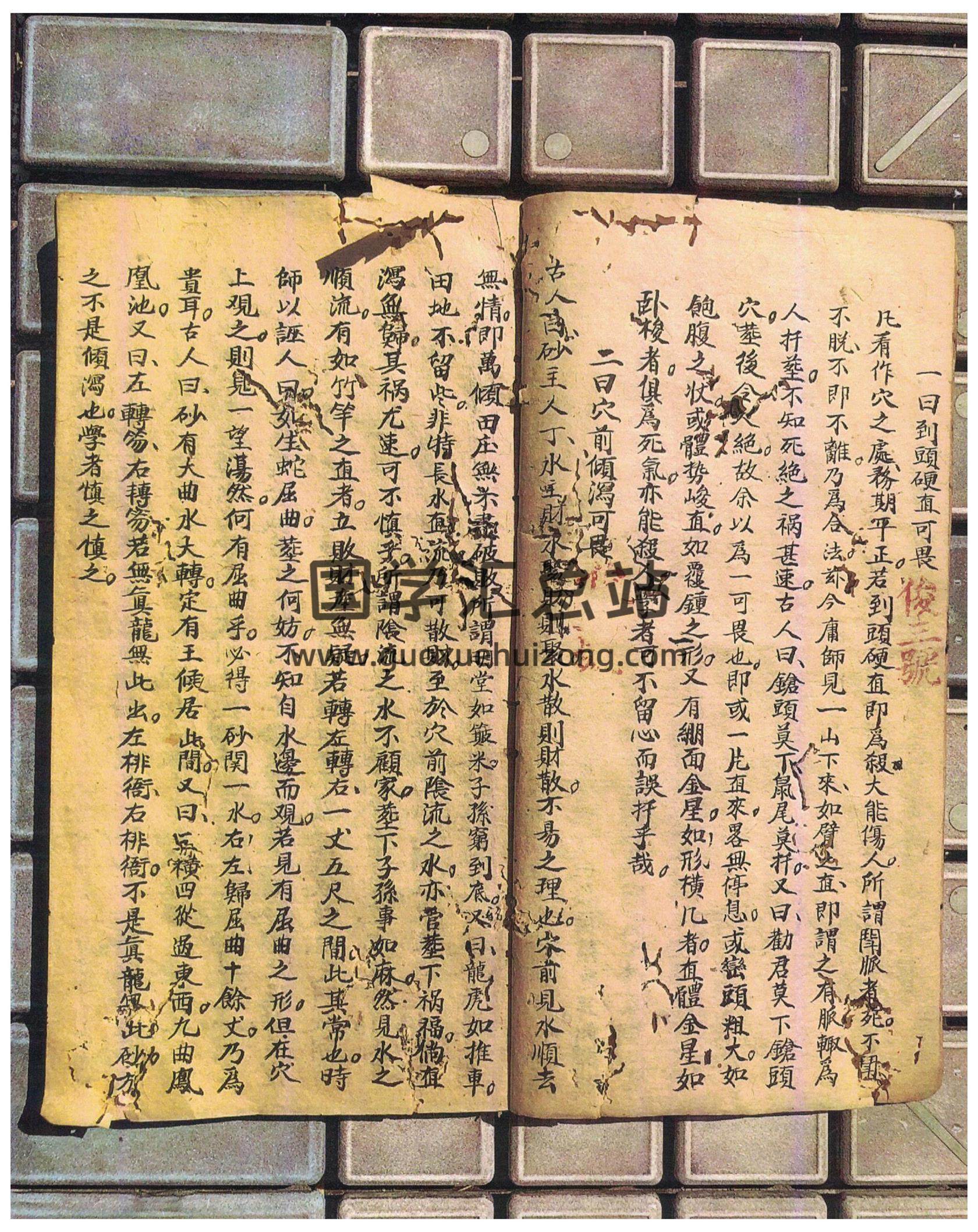 余初年看地,只在两水合襟处,极力搜寻,务期必得。以为当然不易者,多览古坟,遍历山川情意,乃知大谬不然,徃徃自见合水在前,则山嘴必尖,水流必直,龙虎必长,眞气荡然,无一可者。惟有合於转右出,必得右砂稍关,又合於右转左出,亦得左砂稍闌,庶几可以,裁穴。世人若不论龙穴结作,止以水口合襟为奇,则送龙枝脚三条五条,亦有合襟者,但行龙挠掉三节五节亦有合襟者,岂皆可作穴乎。又有一等大龙结作,乃在群山辐輳之中,登山只见峰峦簇簇,分毫不见田水,此岂可以合襟论乎。古人曰,也有龙好无水朝,则把案山為近侍,案外一水暗循环,此穴断非中下地。又曰,两水合处莫当中,流水倾泻最为凶,番身逆转朝来脉,发福绵绵为坐空。又曰,两水合处莫当面,不在左边在右边,仙人倒杖宜横下,下手虽宽也进田,夫坐空与下手空,堪舆所忌,但合水直行,宁可倒杖横扦,而不以为嫌,故以钳口合水之说,為风水大惑也,非数十年不能酒脱,非髙人指示不能省觉,学者勿障於此迷途也。