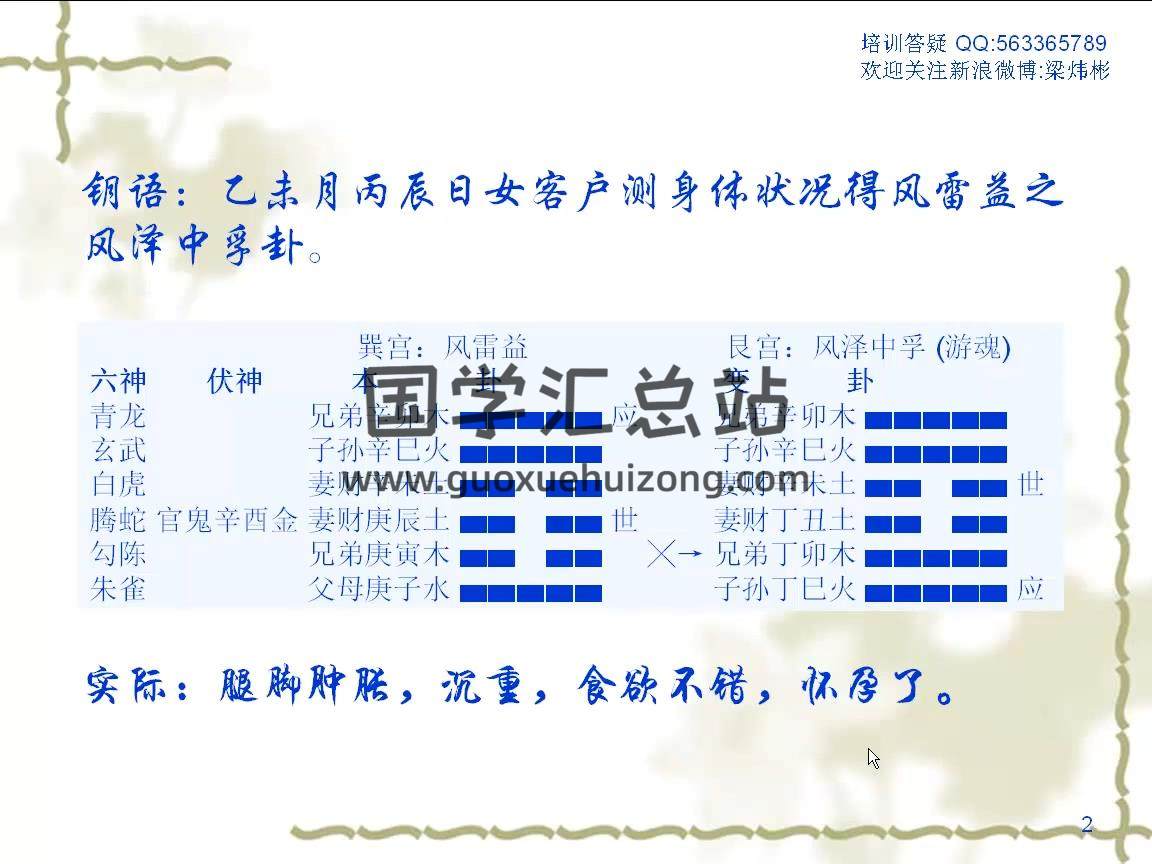 梁炜彬老师《八卦六爻特训班》视频课程55集,梁炜彬,周易预测师,命理师,卦爻师,面相师,风水师,周易学专家,大学学历,周易预测实战派代表之一,新浪名博梁炜彬周易预测在线博主,祖籍诸葛亮躬耕地-河南南阳,自幼痴迷于相学、术数,多年来潜心研究周易预测理论,在学术研究中他坚持“实践检验真理”的原则,“取其精华、弃其糟粕”,批判的继承传统周易文化,学员遍及大江南北。