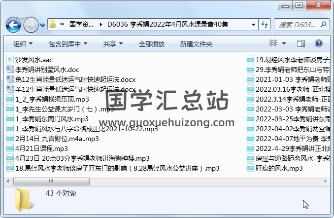 李秀娟2022年4月风水课录音40集(约14小时)百度网盘分享下载(有些地方可能写41集,经检查其中一集为空内容,所以删除了)