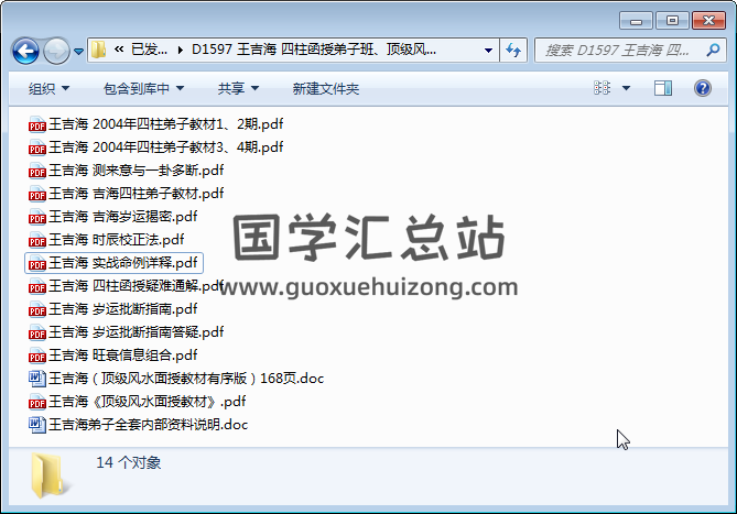 王吉海 四柱函授弟子班、顶级风水面授班教材等资料14份