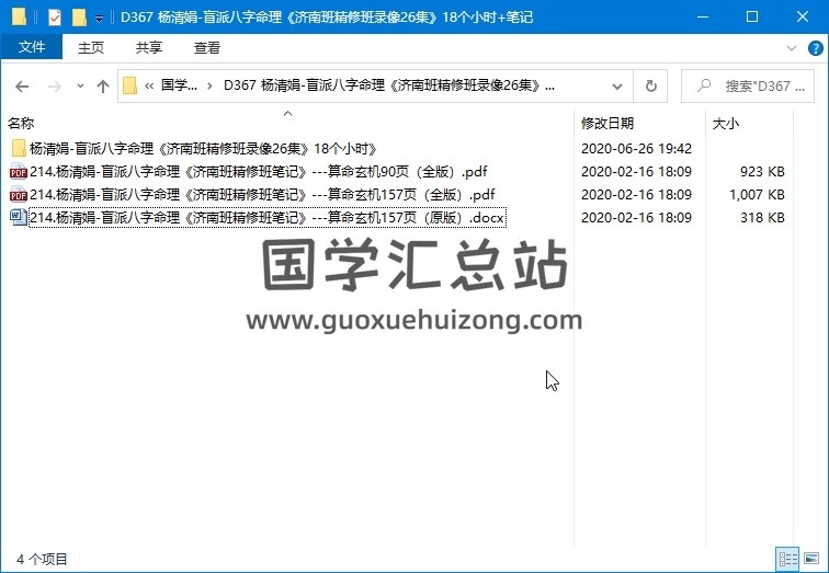 - D367 楊清娟-盲派八字命理《濟南班精修班錄像26集》18個小時+筆記