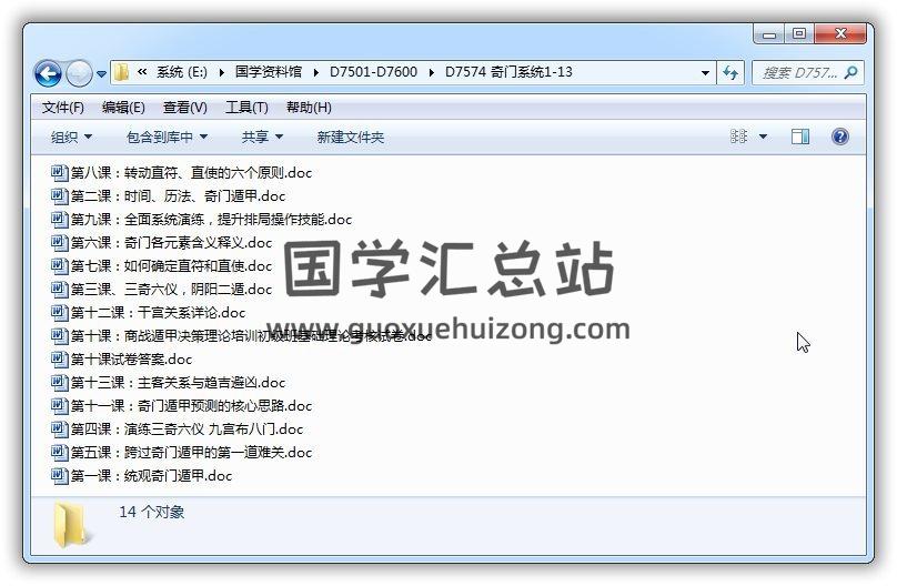 奇门遁甲资料《奇门系统1-13》14份word版 百度网盘分享