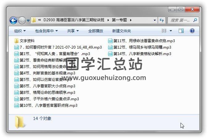 四大专题+讲义+案例点评。《盲派理论推断财、官、婚、寿等方面的”凶事”特准》被誉为是最接地气的盲派老师 ,他的课程推荐都学习一下,高老师的课以录音为主,没有视频版。四大专题的话,看下面截图,围绕富贵贫贱,婚姻等来讲解。