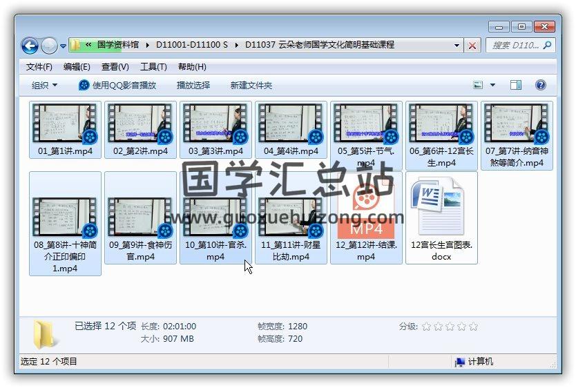 云朵老师《国学文化简明基础课程》12集视频 百度网盘分享(2小时01分钟)