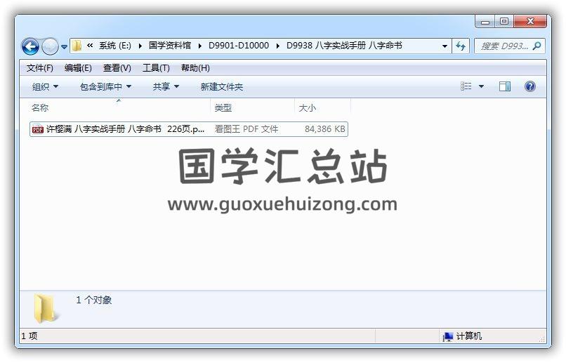 八字命理书籍 许樱满《八字实战手册 八字命书》226页PDF电子书 百度网盘分享 资源信息 资源编号: 9938 文件大小: 共226页,82.4MB 其它: 无 资源目录 许樱满 八字实战手册 八字命书 226页.pdf 资源预览 以上内容由网站用户发布,如有侵权,请联系我们立即删除!联系微信:D968111